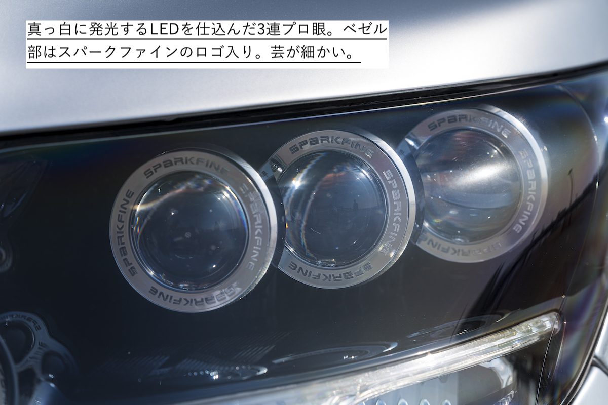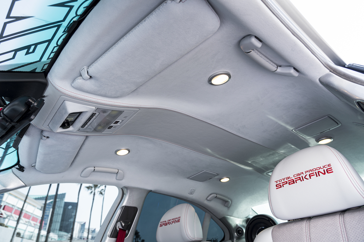 前述した通り、造形が丸わかりになる色でもある。その特性を生かすべく、サイドに軽くつまみ出したようなラインを追加。ヘッドライトの目尻上あたりから始まり、サイドウインドウ下を通り、給油口も貫通してウイングまで繋がるラインである。純正でもうっすらプレスが入っているが、それを明確化したといえばいいだろうか。さり気なくもシャープな陰影が付き、大柄な40LSのボディをキュッと引き締める。