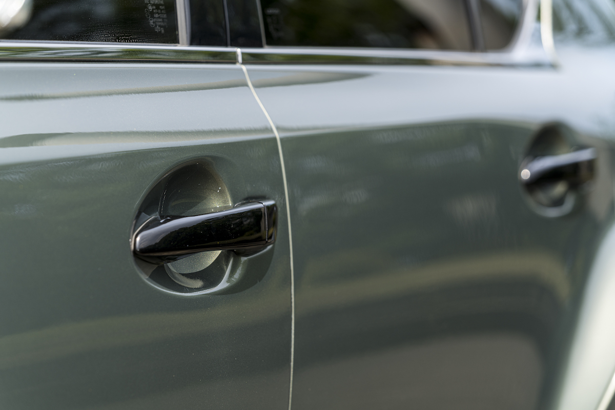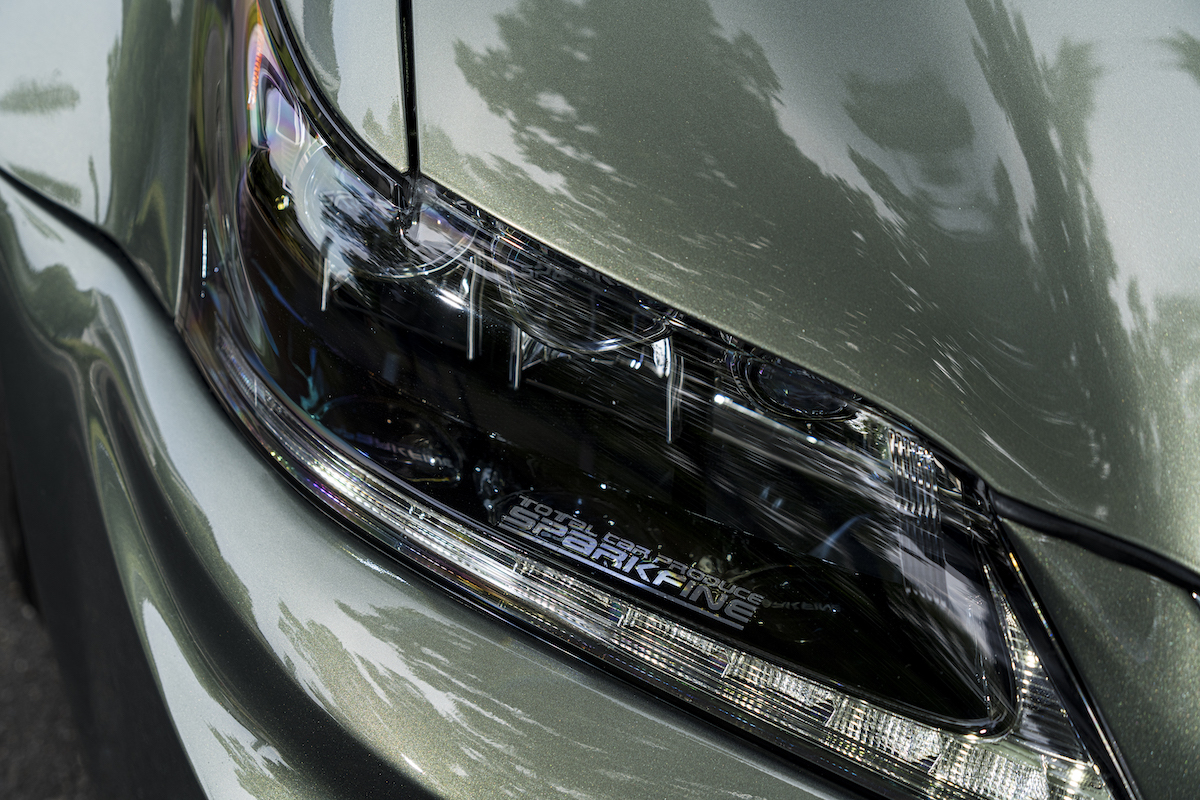そして要注目のボディカラー。品の良い落ち着いた色味ながら、華やかさもあるレクサスES純正のサンライトグリーンマイカメタリックに全塗装。これが抑えの効いたスポーティスタイルと絶妙にマッチ。レクサス同士という親和性も手伝って、ドンピシャにハマった。