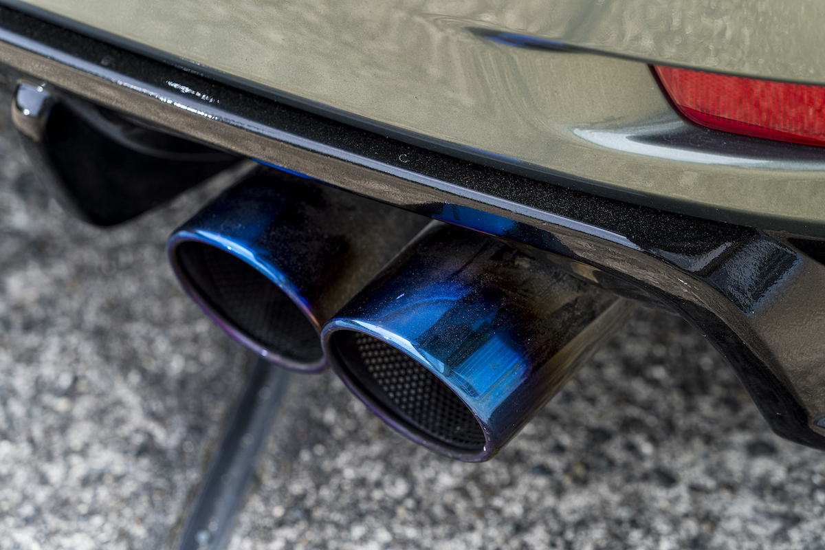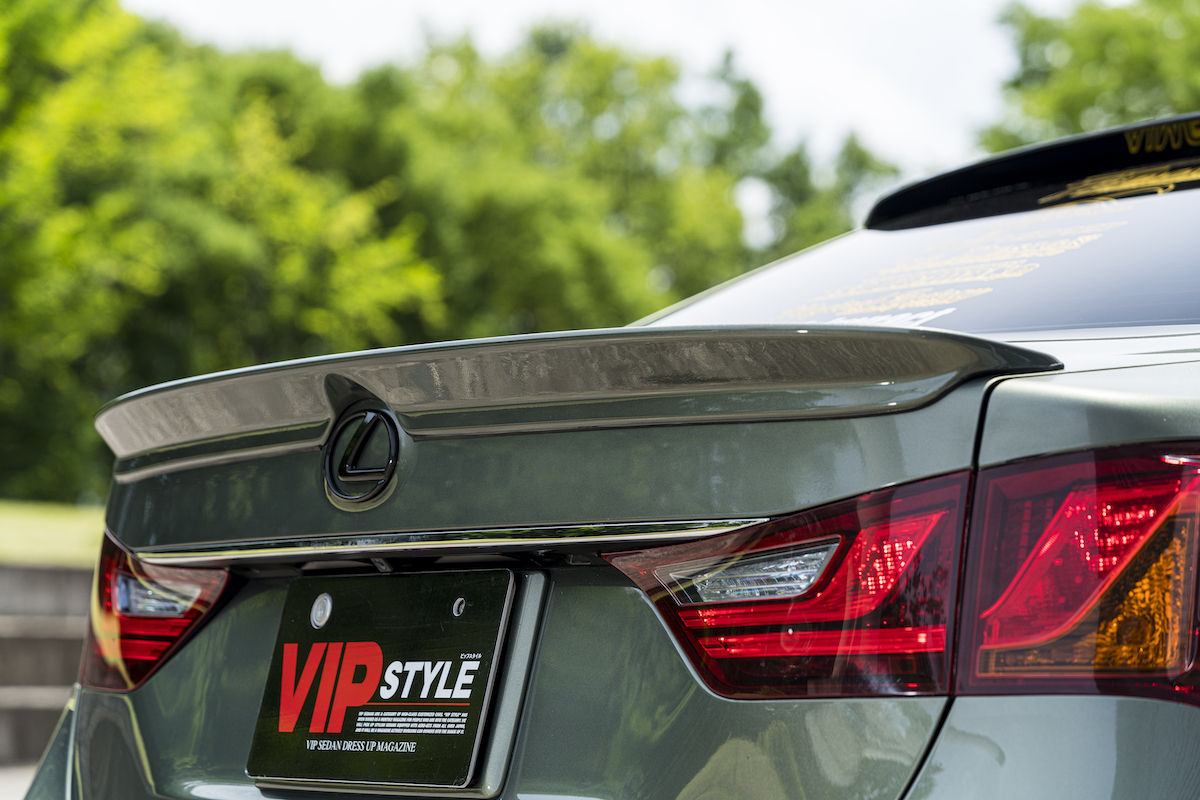 リアはレクソンのディフューザーを装着し、チタン風のマフラーカッターを組み合わせ。アグレッシブだけど過激すぎず、レクサスGSらしい高級感も損なわない。