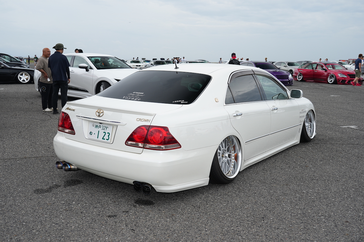その名を全国に轟かす大人気ショップがヴォヤージュ。これまでに数多くの名車を輩出。代表の河合サンは現役オーナーとして、愛車の33シーマで全国各地のイベントに積極的に参加。ヴォヤージュと聞くと、派手で個性的なVIPカーを思い浮かべる人が多いと思うが、実はシンプルVIPも得意分野。今回はVIPスタイルミーティングの会場に持ち込んだ、18クラウンについて直撃インタビュー。