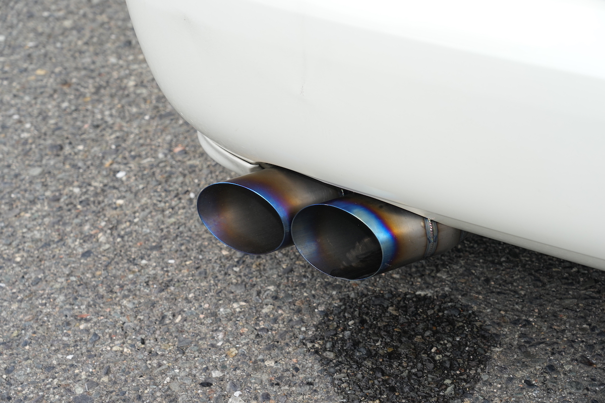 河合 今回のVIPスタイルのイベントのために、フロントからフルチタンで作りました。ゼロクラではいないですね、この見た目とサウンドは。ぱっと見は大人しい見た目なんですけど、いざ走らせると、凄い迫力がある音を響かせる。ゼロクラって、元々、真ん中一本。これは、そのスペースに45φのパイプを2本入れています。出口は95φ。それによって普通のゼロクラよりも重低音を響かせることができるんです。