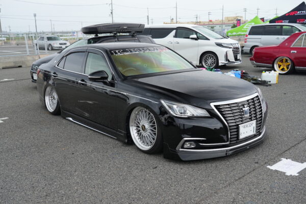 Kブレイクのリスペクトのフロントハーフを装着した210クラウンロイヤル。「サイドとリアを作ります。来年の大阪オートメッセに間に合うように頑張ります!」。