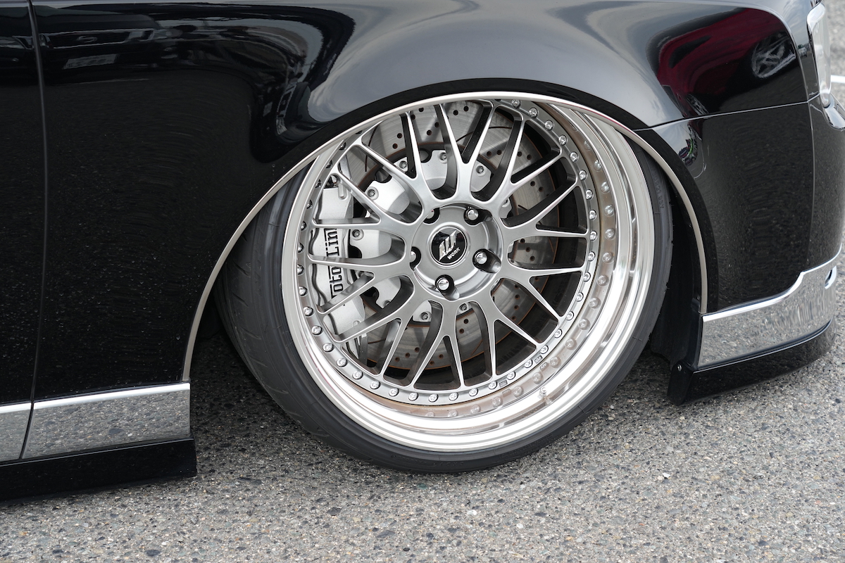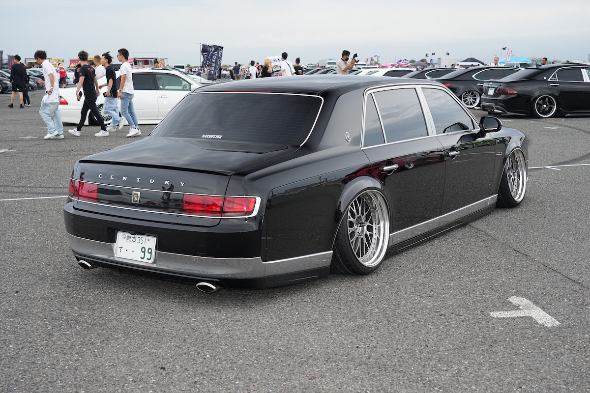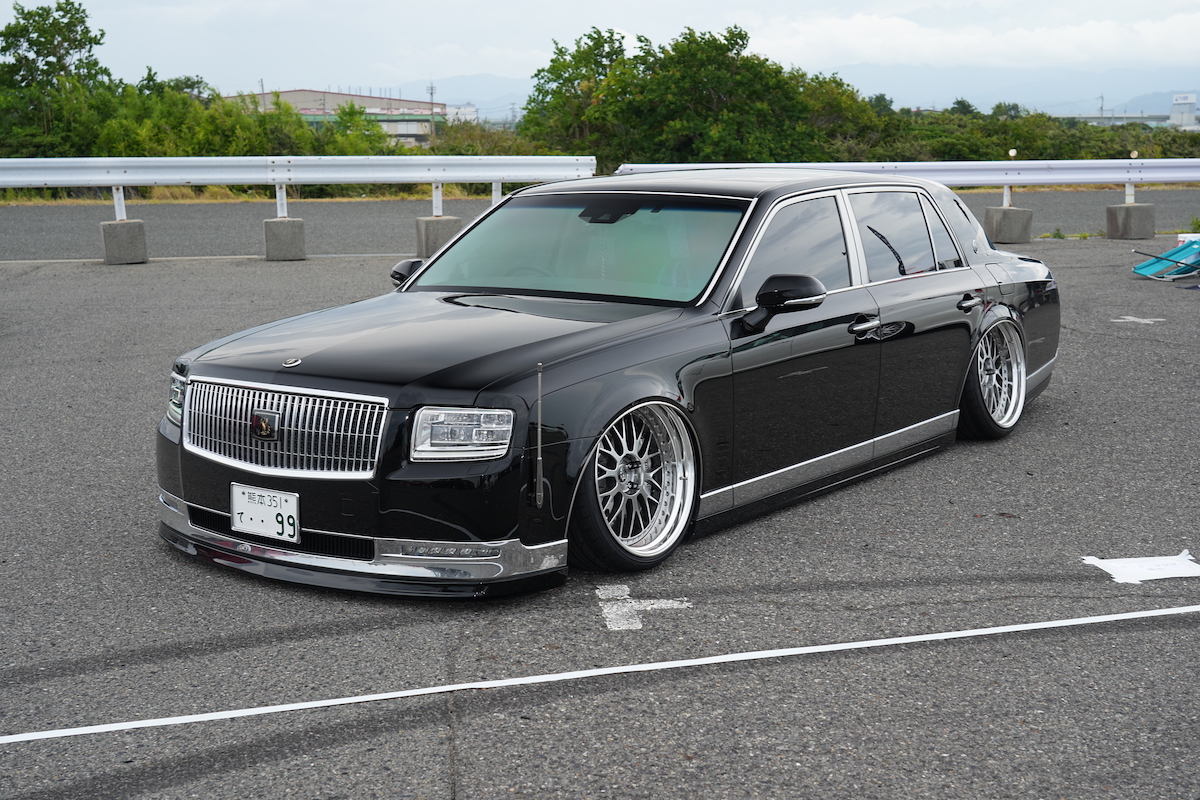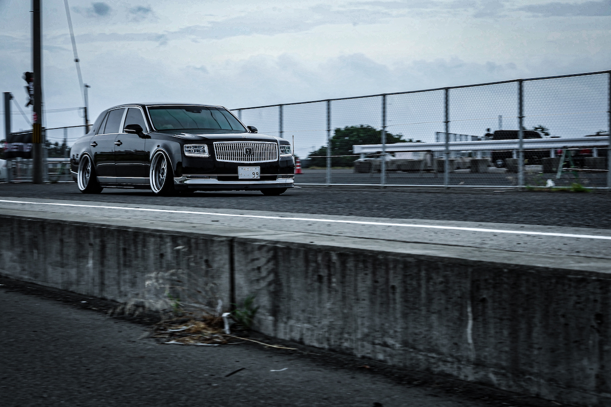 今回のVIPスタイルミーティングの会場に展示したデモカーは現行型センチュリー。この威圧感が堪らない。エアロパーツはアーティシャンスピリッツ加工。ホイールはワーク ジスタンスW10M。足まわりはイデアルのエアサス入り。ホイールの隙間からチラリと見えるブレーキはモーターリンク熊本のオリジナル。