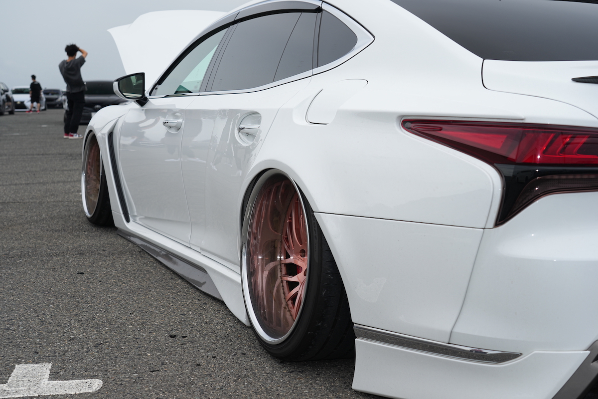 高級セダンならではのカッコ良さを追求したドレスアップに定評があるKプロデュース。VIPスタイルミーティングの会場に持ち込んだデモカーは、代表の河村サンの愛車であるLS500。エイムゲイン 純VIP GTワイドボディを組み、唯一無二の存在感を披露。