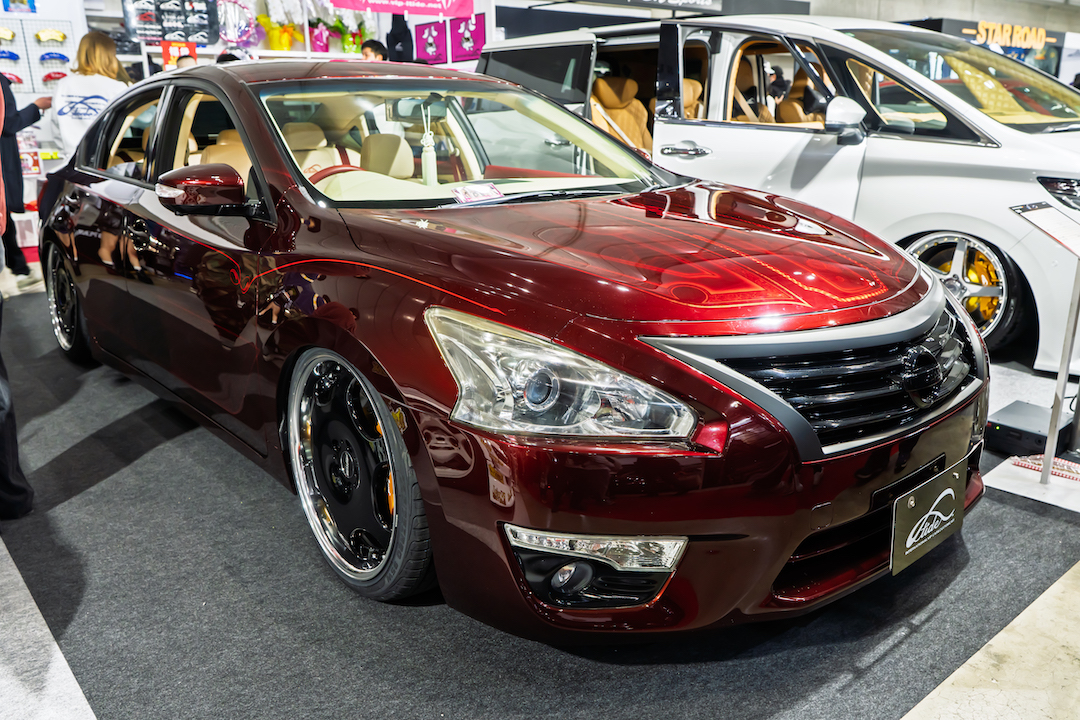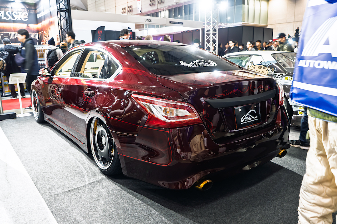 もう一台の出展車輌はカスタムペイントが魅力のティアナで、「まさか自分のクルマを出展して頂けるとは思ってもみなかったので驚きを隠せなかったです」とオーナーの肥沼サン(東京都)。