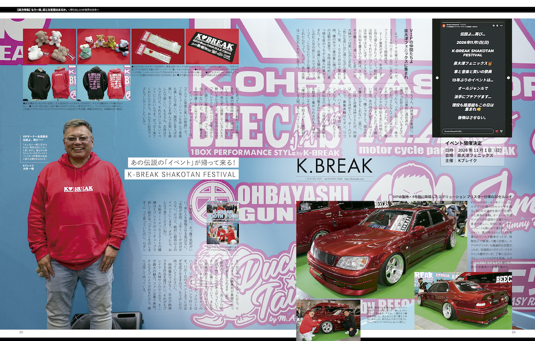 Kブレイク主催のイベントが、2026年11月1日(日)に泉大津フェニックスで開催決定。VIP業界がずっと、本当にずっと待ち望んできたイベント。期待値は相当で、それだけにプレッシャーは半端ではないはず。インスタグラムに告知を書き込んだ際は、きっと手が震えたに違いないと思ったが、大林サンは笑いながら否定。