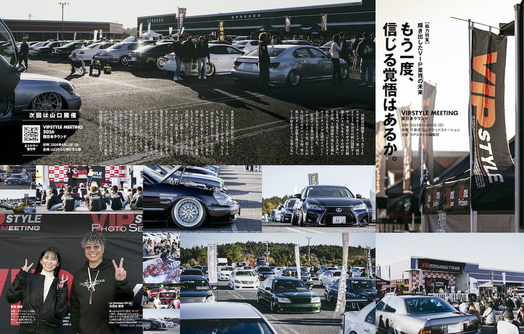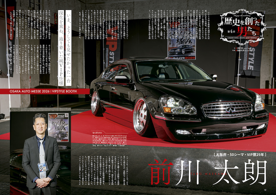 「VIPスタイルブースというのは、自分を含め、VIPオーナーたちが目指す大きな目標で、この舞台に立ちたいという一心でカスタムを頑張り続けることができる存在なんです。VIPスタイルブースの復活はVIP業界の発展に必ず繋がると思っていて、そこに自分が関われたことを光栄に思っています」。