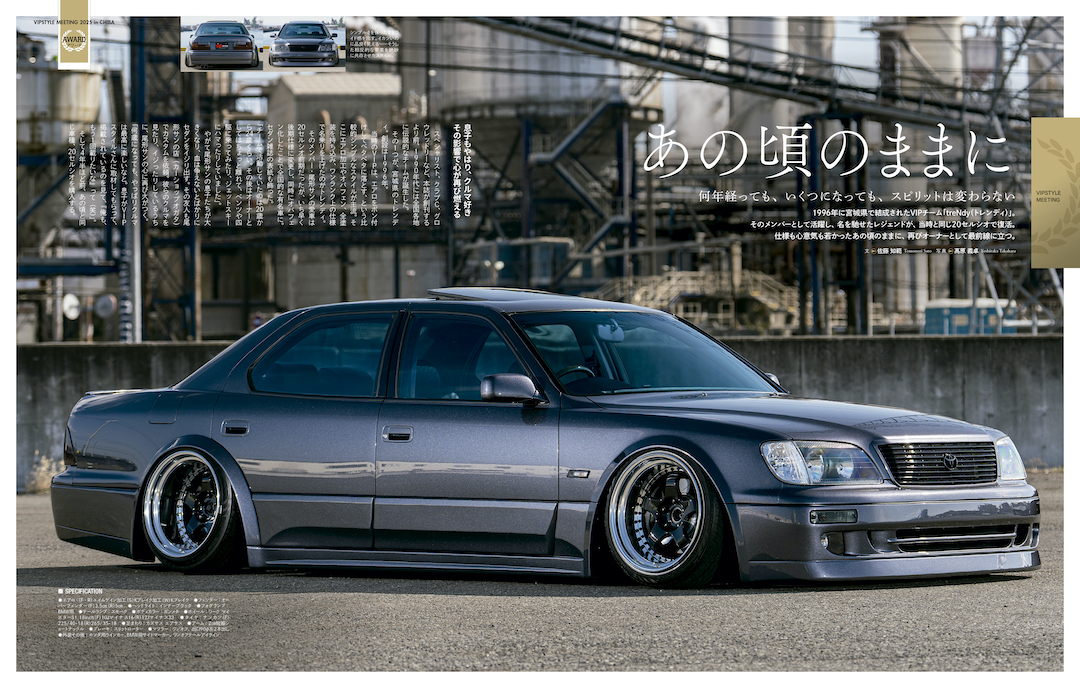 何年経っても、いくつになっても、スピリットは変わらない。1996年に宮城県で結成されたVIPチーム「treNdy(トレンディ)」。そのメンバーとして活躍し、名を馳せたレジェンドが、当時と同じ20セルシオで復活。仕様も心意気も若かったあの頃のままに、再びオーナーとして最前線に立つ。