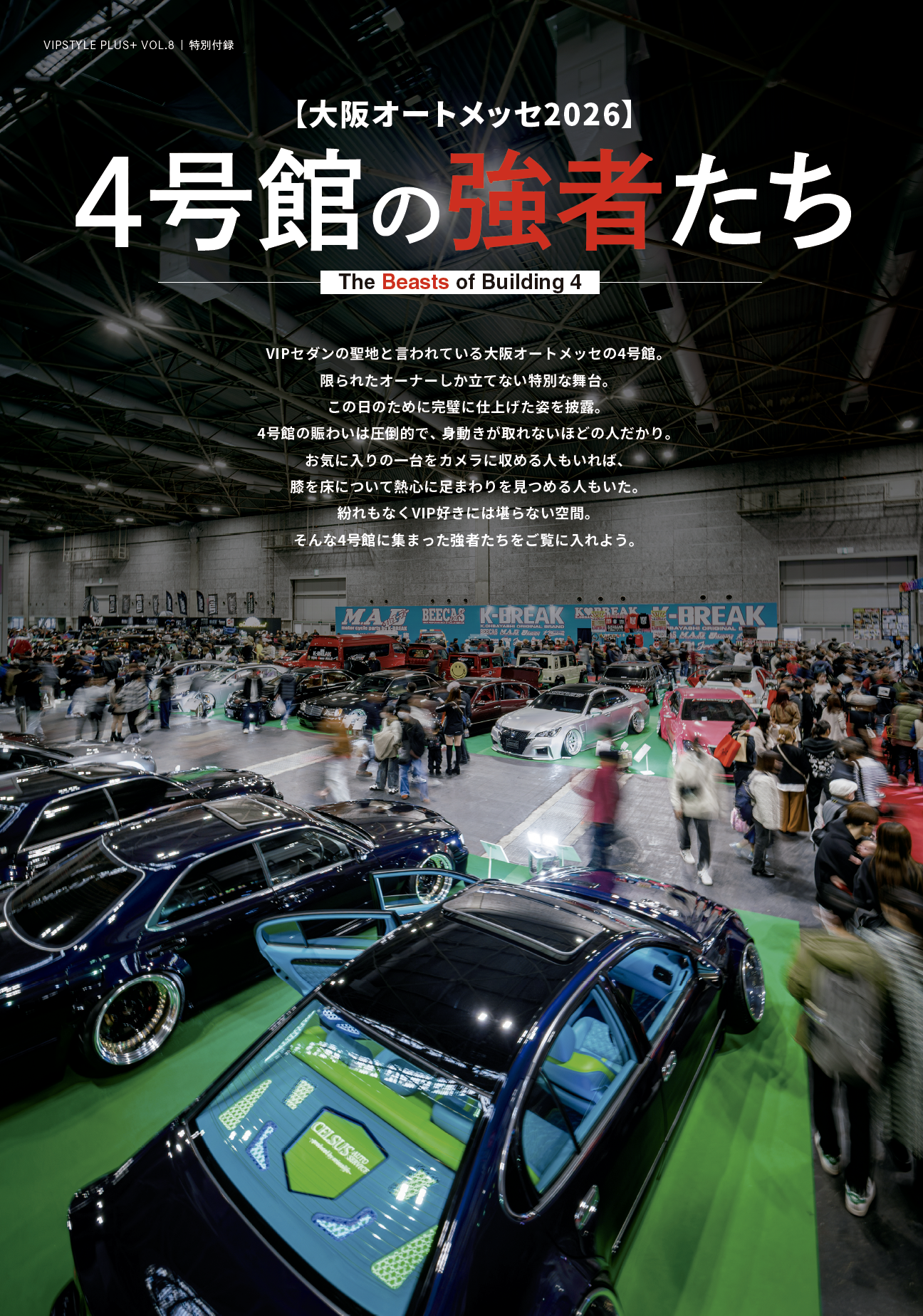 VIPセダンの聖地と言われている大阪オートメッセの4号館。限られたオーナーしか立てない特別な舞台。この日のために完璧に仕上げた姿を披露。4号館の賑わいは圧倒的で、身動きが取れないほどの人だかり。