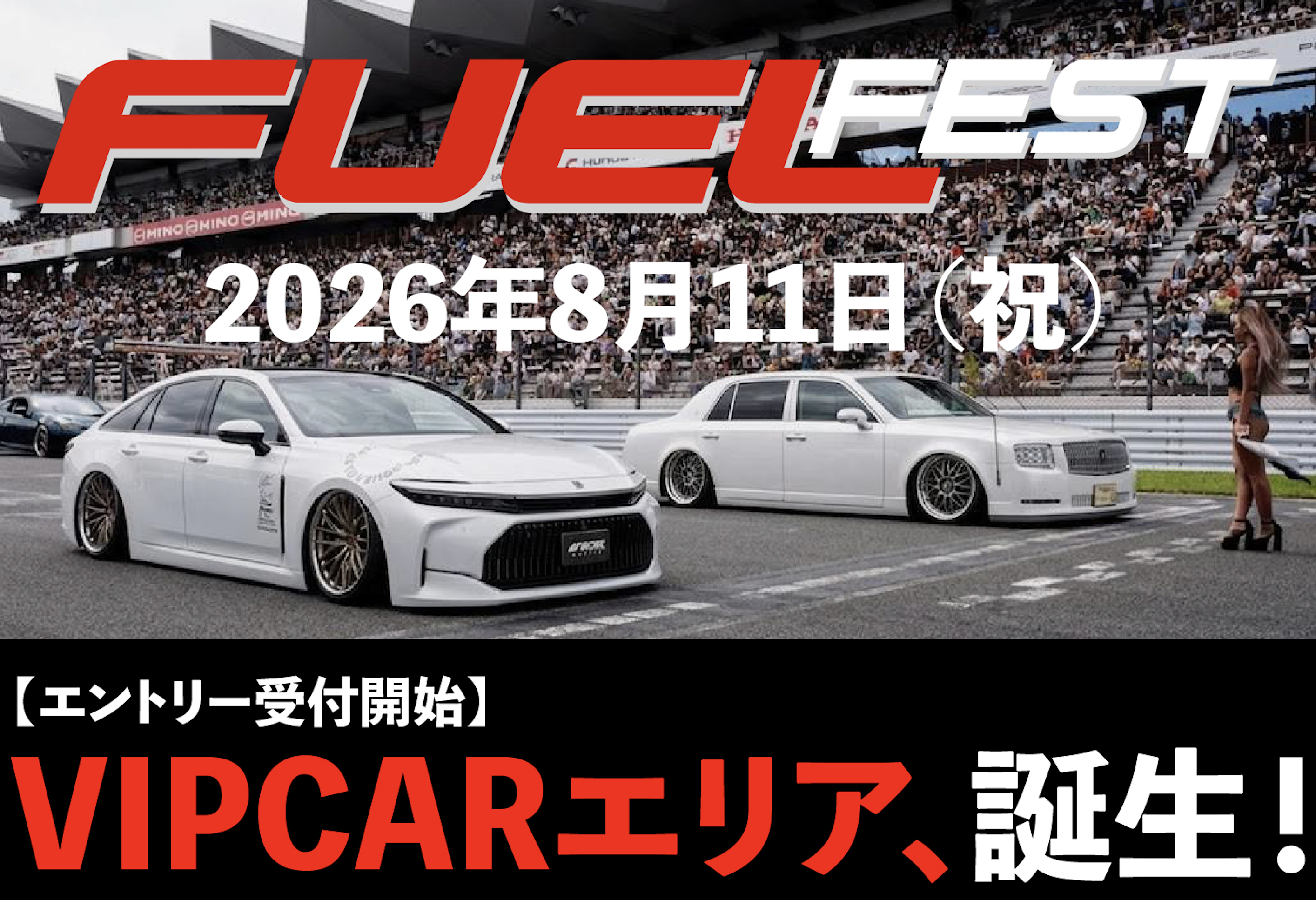 一生の記念になる富士スピードウェイ(メインコース)のパレードランなど、様々なコンテンツを用意。「VIPCAR天国 in FUELFEST JAPAN 2026」にご期待ください!